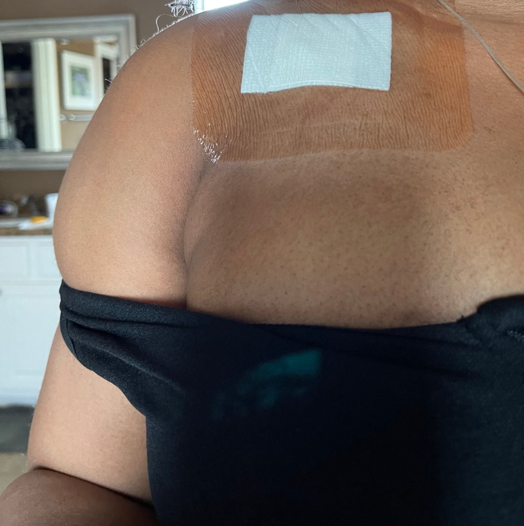 After a few days at home, my right shoulder and arm were so sore. I felt like I was in a fight with Mike Tyson and lost. The surgical site was covered with a bandage but the areas around it were swollen. I took Tylenol but had minimal relief. I tried to lay on my back with my head, right shoulder and right arm propped up on pillows. This position helped me stay still but caused me to guard my right side and trigger more stiffness. Staying at home wasn’t an option, so I decided to go to work to take care of a few things in preparation for the unknown. I took my time dressing, ensuring that I wore clothing that was not too confining, and then drove myself to work using my left arm.
